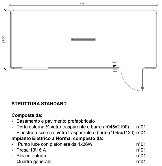 – Lunghezza da: mt 2,40 a 12,00 – Larghezza mt. 2,40 – Altezza mt. 3,00